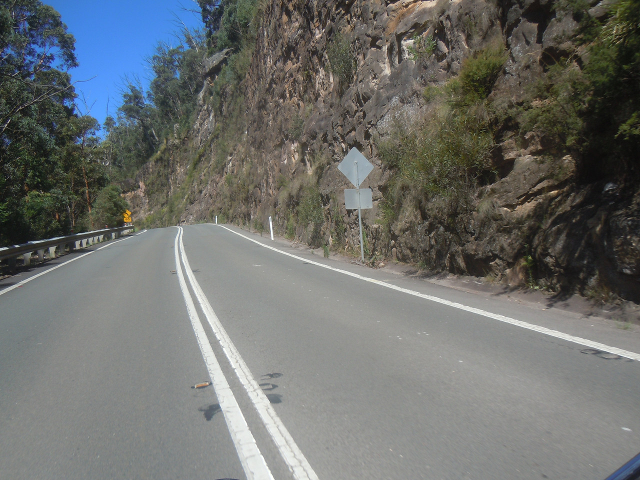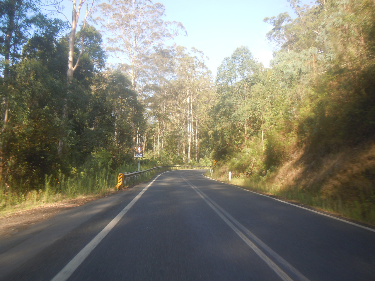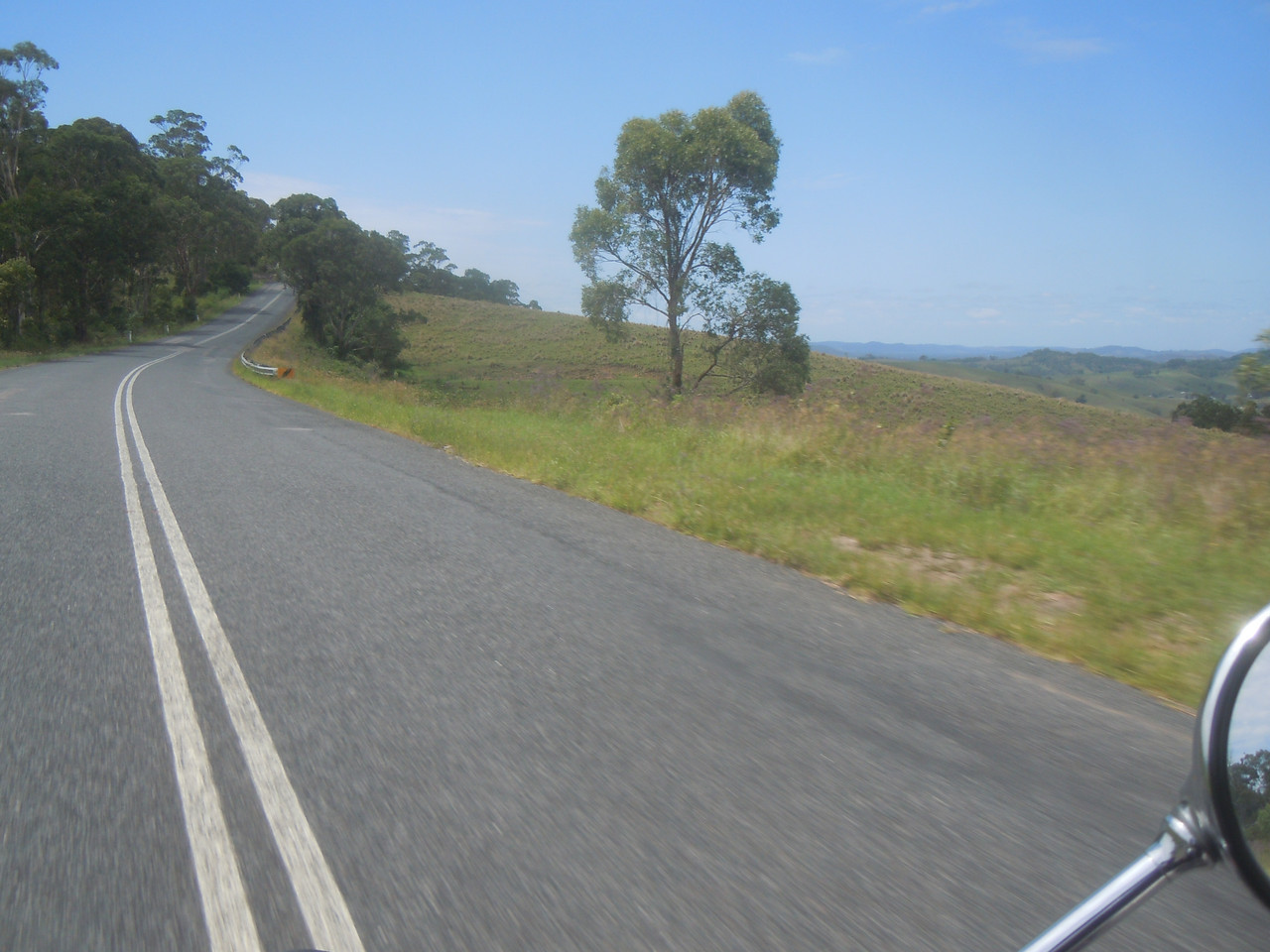 I stopped in a shiny new fuel station on the outskirts of Armidale, refulled (and watered; it was hot) and got moving again — through Armidale, along the pleasant and fast road across the plateau, through Ebor onto the delightful and oft-written about road to Grafton. I was quickly able to get past some slower traffic and pretty much had the road to myself. Lovely.