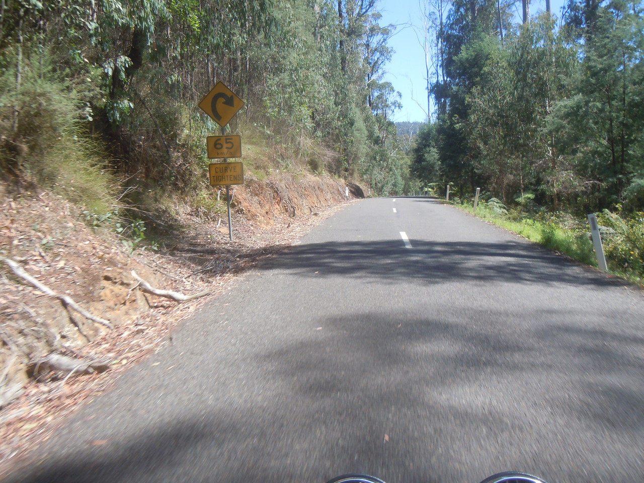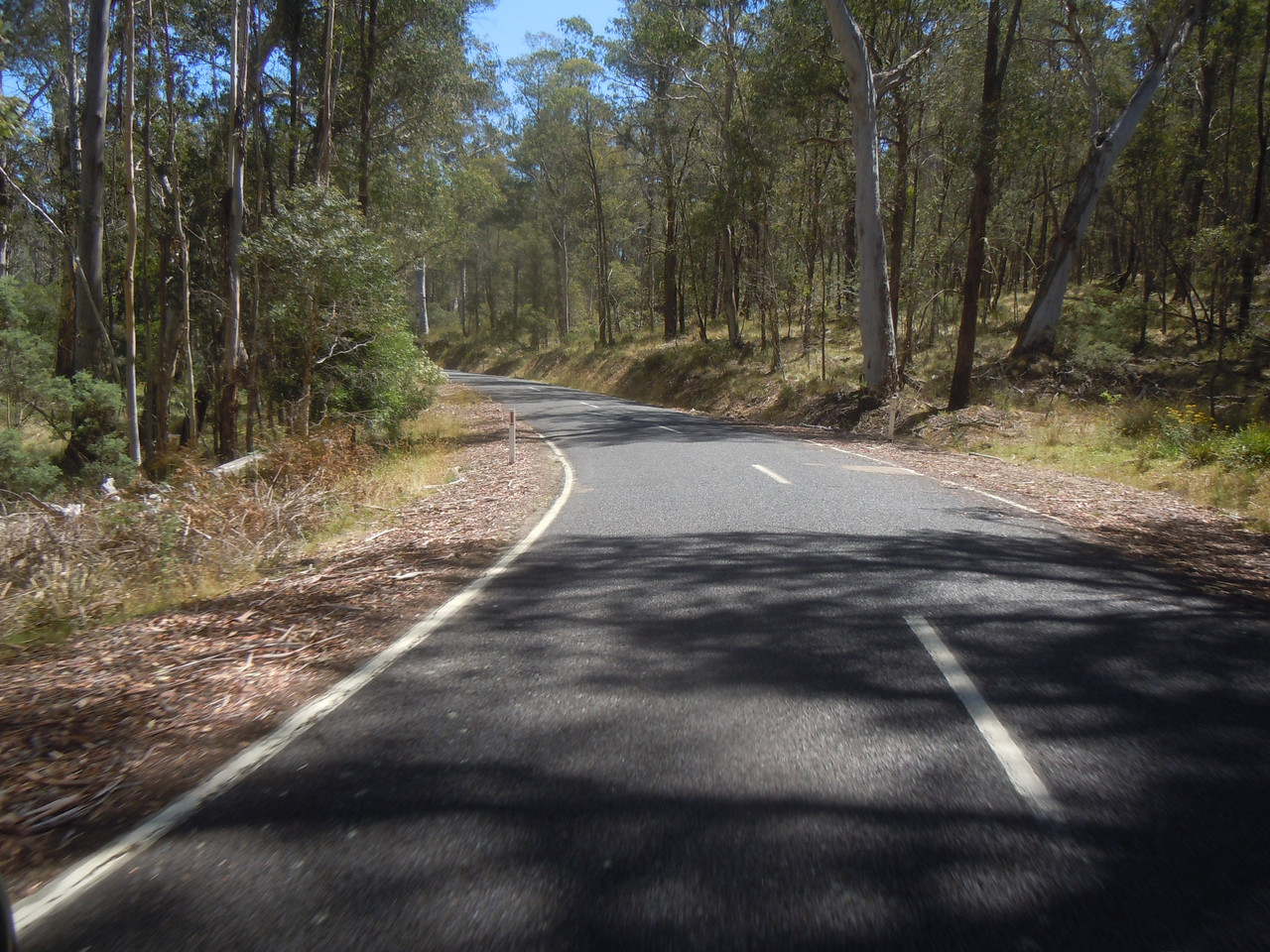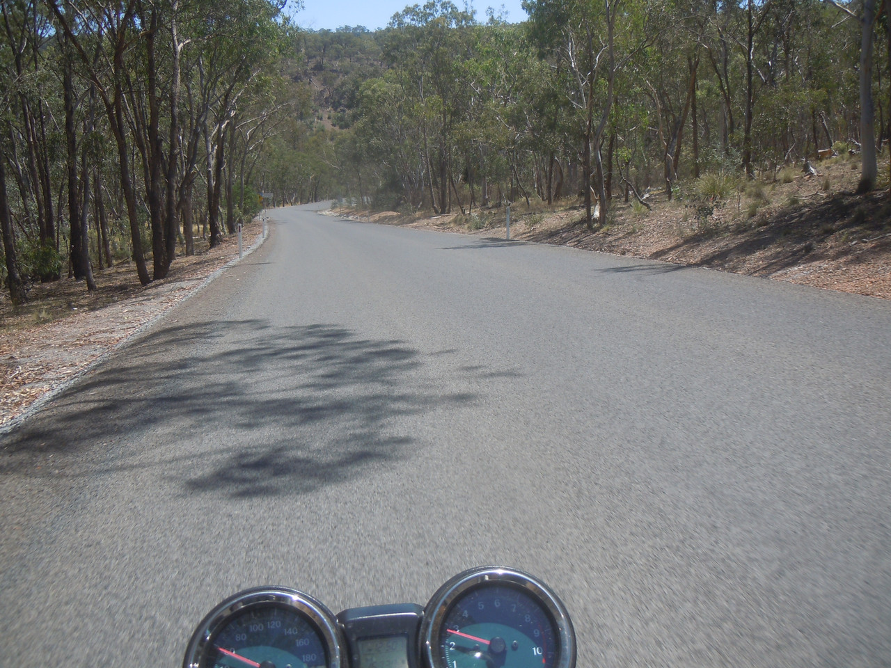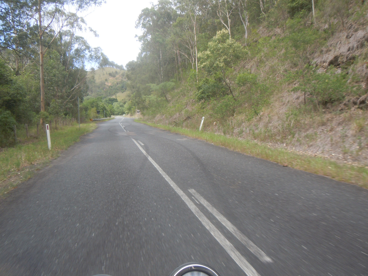 I had breakfast and tried to persuade myself that I'd ride until I was tired, but the scent of home was in my nostrils and I set off up the rest of the hill. I prefer it slightly to the road to Gingers Creek. The corners a little more open, the speed limit a little higher and the riding feels just a little easier for the touring motorcyclist. Too soon, really, one bursts out of the trees and into cleared farming land on the plateau of the range and the road becomes less interesting.