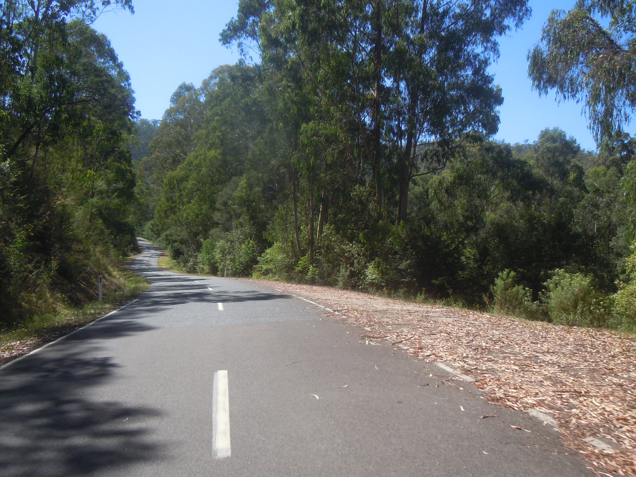 The photos above show the descent and then the bridge over the Abercrombie River. Not long after the right-hand corner in the distance, there's a sharp-ish U-turn and you're into the climb up the other side. There was road work going on, and the surface was a great deal better then when I was last there in 2024.