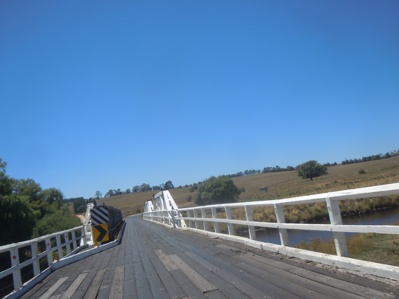 There's lots of these wooden decked bridges in New South Wales. Occasionally they carry warnings to cyclists about gaps