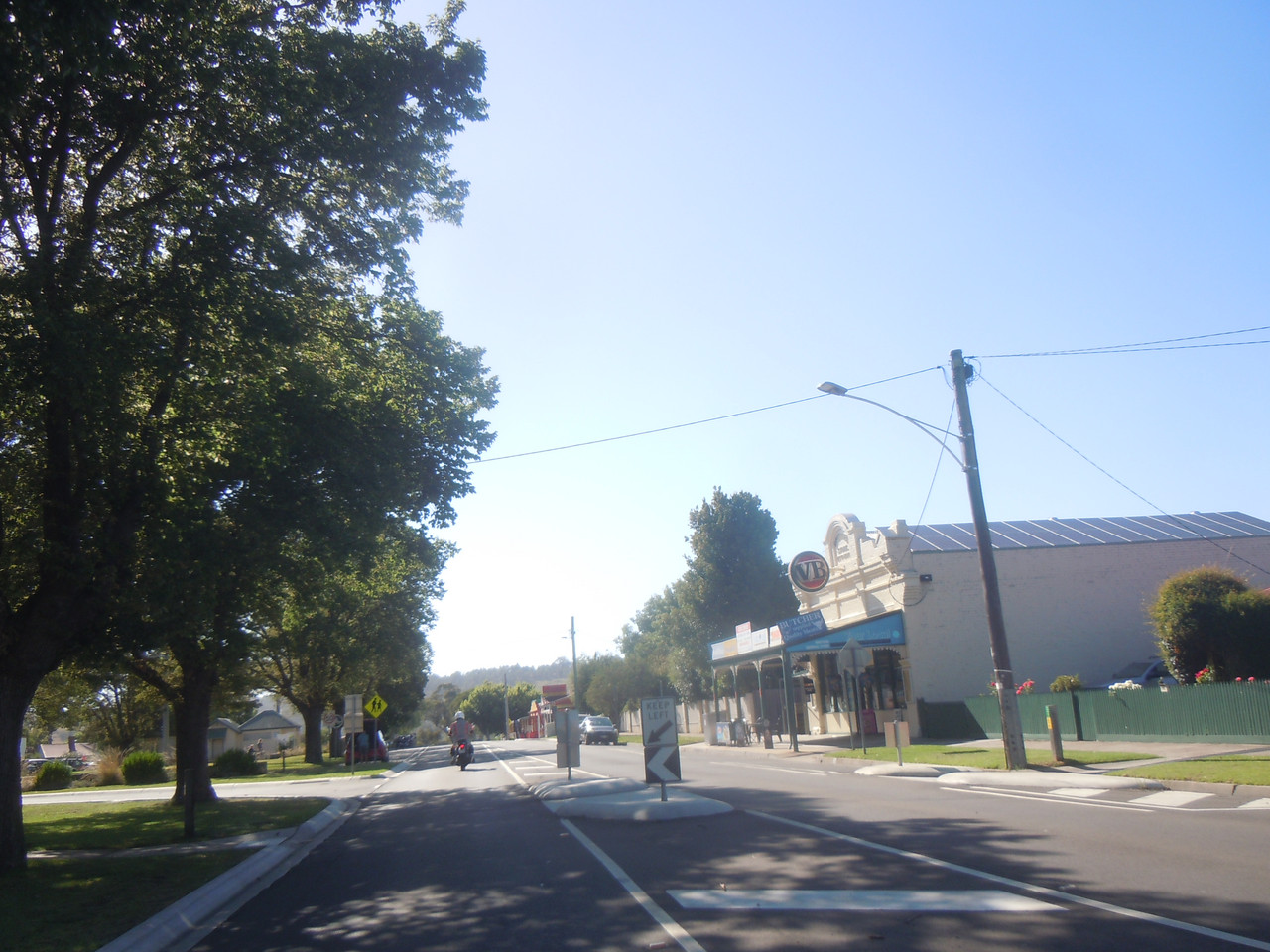 After that I rode through Duckmaloi (it's such a great word, I had to put it in) and thence to Hampton on a road I don't recall ever riding. The Hampton Halfway Hotel Motel provided me with coffee, water, a meat pie and a pleasant view while I ate and drank.