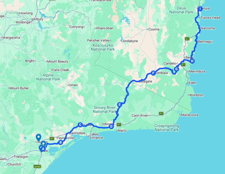 The coast road took me to Tilba Tilba where I rejoined the highway for the run to Moruya Heads where I was visiting friends. I was pleased to arrive.