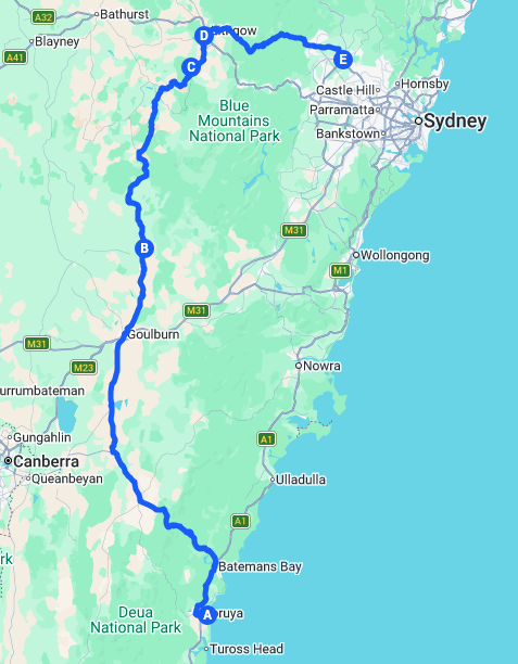 All the thinking about whether to stay was rather trumped by the early morning weather forecasts which had a significant heatwave gradually extending east in coming days and threatened storms for later in the week. I decided to move. Even in the 50 or so kilometres from Bathurst to Lithgow there would be a significant temperature difference. That determined my route.
