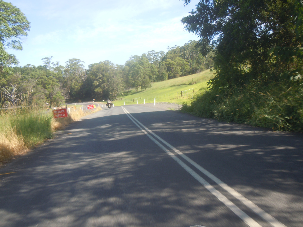 I bought fuel, ate, had coffee and water at Grafton then decided to take a slightly longer route to stay off the highway for as long as possible. Up the Summerland Way — again oft travelled — through Casino and Kyogle and then to Murwillumbah along a lovely road. Stopped at road works on the early part of the road, I was joined by a bloke on a V-Strom. While we waited for a traffic light he told me it had north of 200,000 kilometres on the clock. He also told me a funny story about a resident who had spent lots of time putting water on the spot where the police liked to set up a speed trap so that it became difficult for them to park. I think he said they'd put down a concrete pad, but I didn't see it. Given his blithe disregard for speed limits, it was good he was well informed about areas of risk.