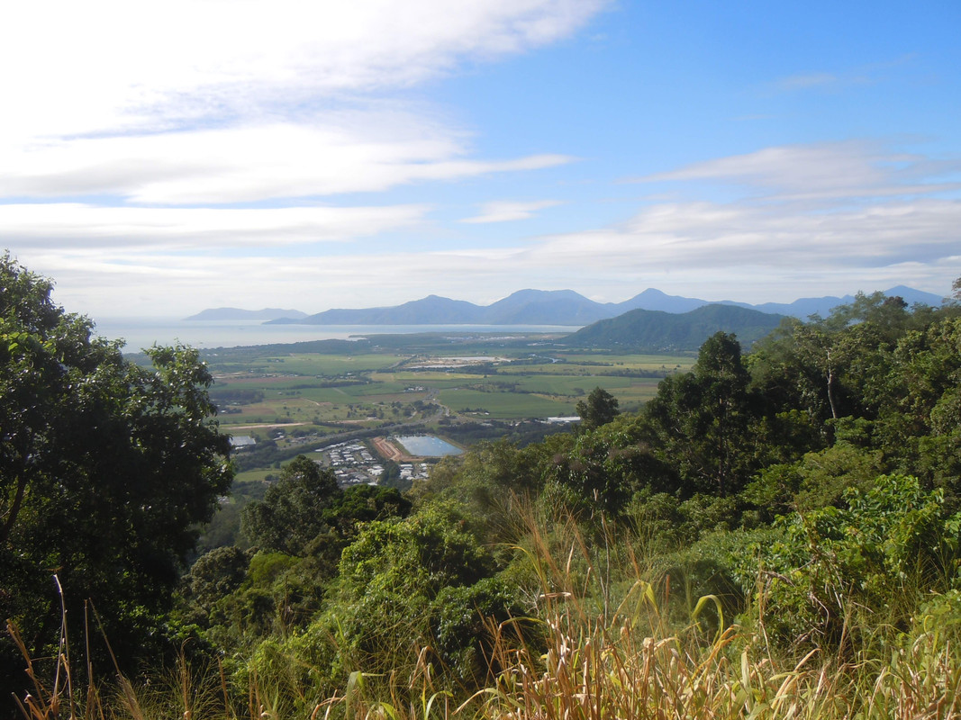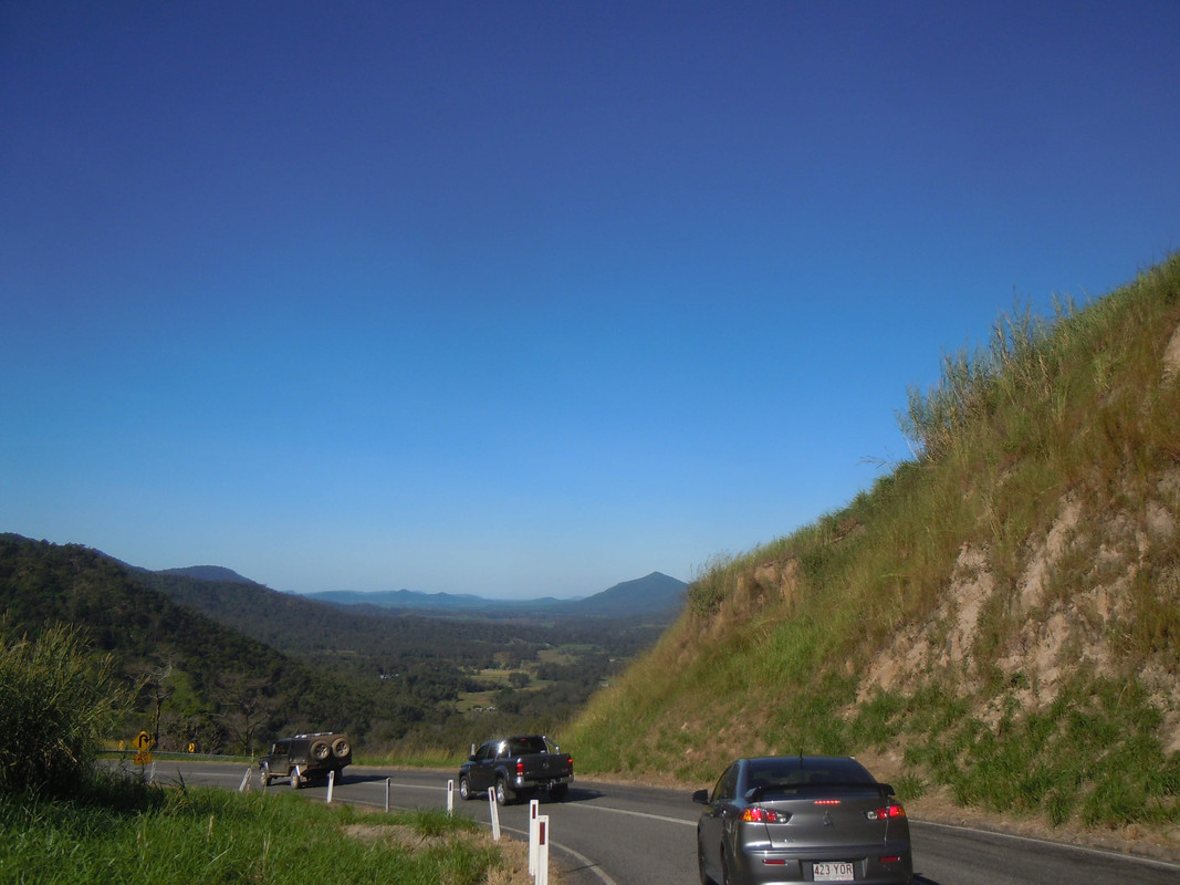 One of the things I really like about FNQ is that the mountains, although not remotely tall by world standards, rise steeply from the sea. There is often a very short plain between the edge of the water and the foothills. The next pictures show these mountains coming into view as we made our way east. They also show that there is considerably greater rainfall nearer the coast providing lovely rainforest. The ancient Daintree rain forest, north of Cairns and Port Douglas is a World Heritage area.