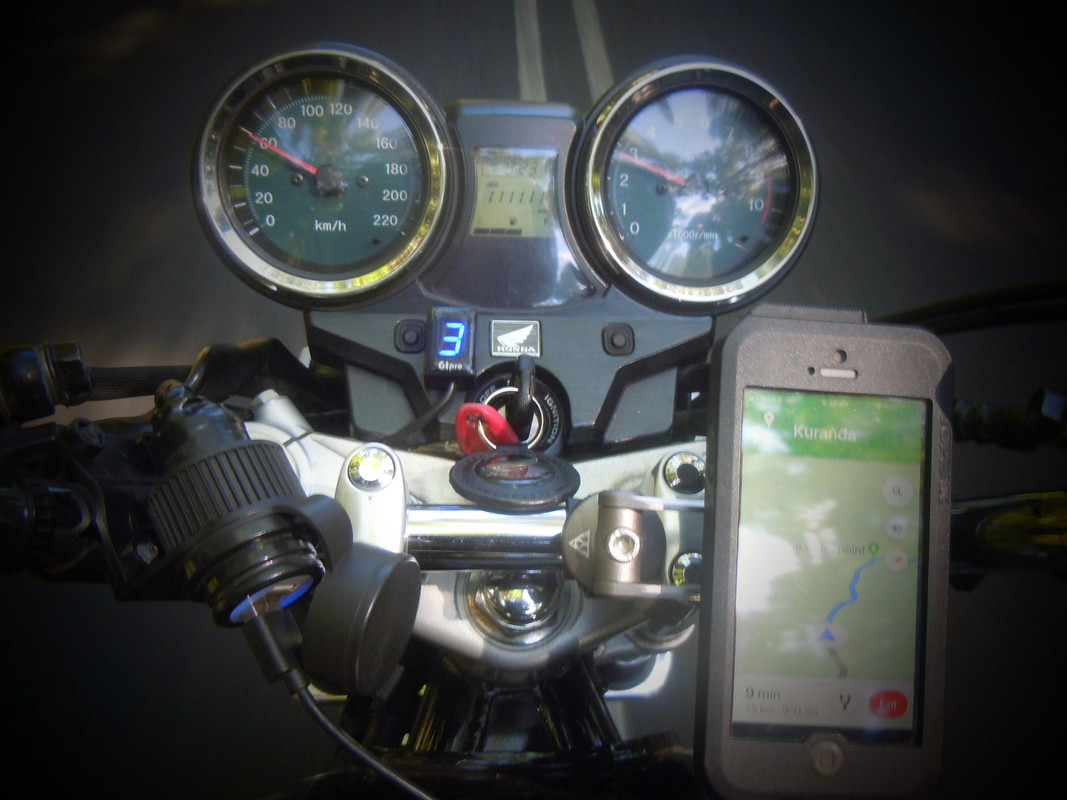 I had a milestone coming up, and I was imagining pulling over to get the shots, but as it turned out, I was on the Kuranda Road with corners everywhere and nothing resembling a shoulder to come to rest on. I managed a poor shot with lanyard cam.