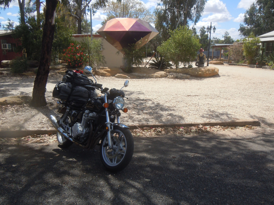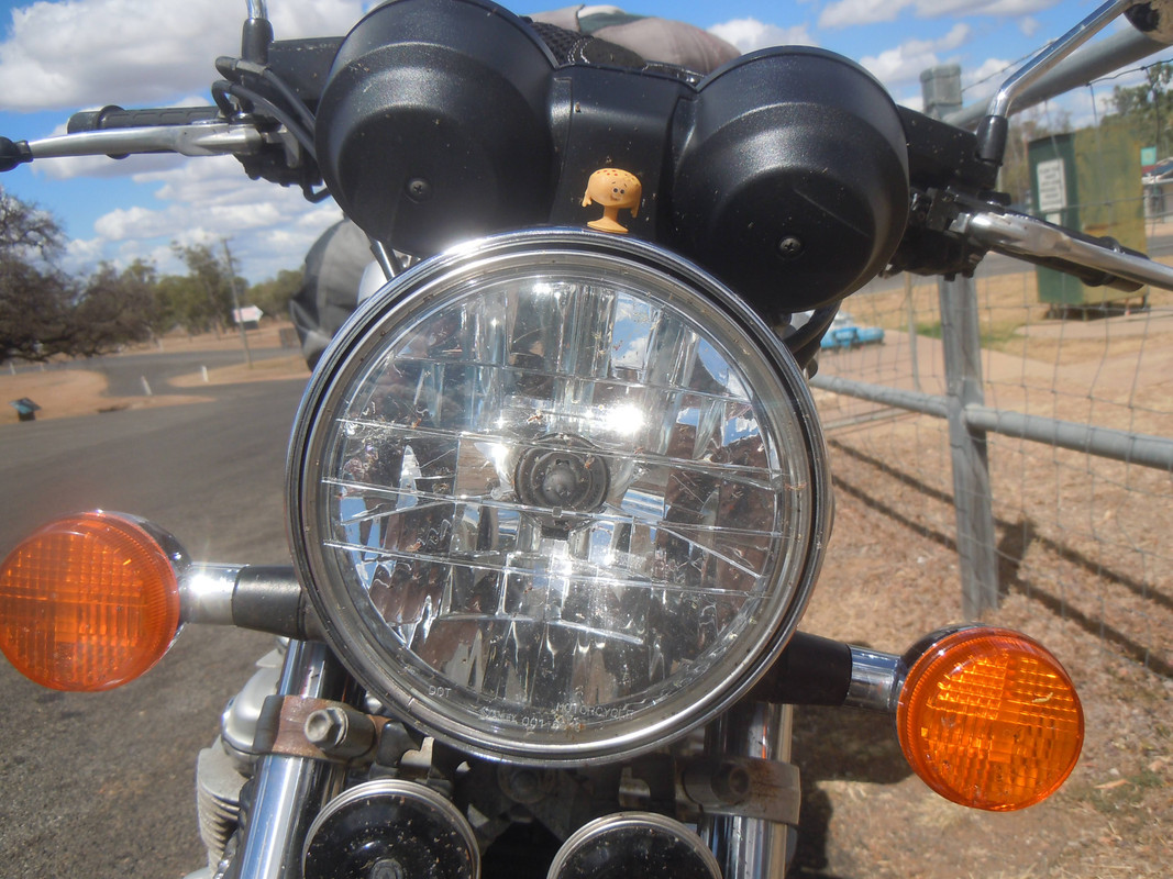 At Cararvon I'd found a small, plastic child's toy on the ground. Apparently it's called an ooshie. It had a rubber suction cup on the base and I stuck it on the headlight of the bike. I thought no more about it. After something to eat and a tank of petrol at The Gemfields, I was surprised to notice it had survived cruising speed on the CB1100.