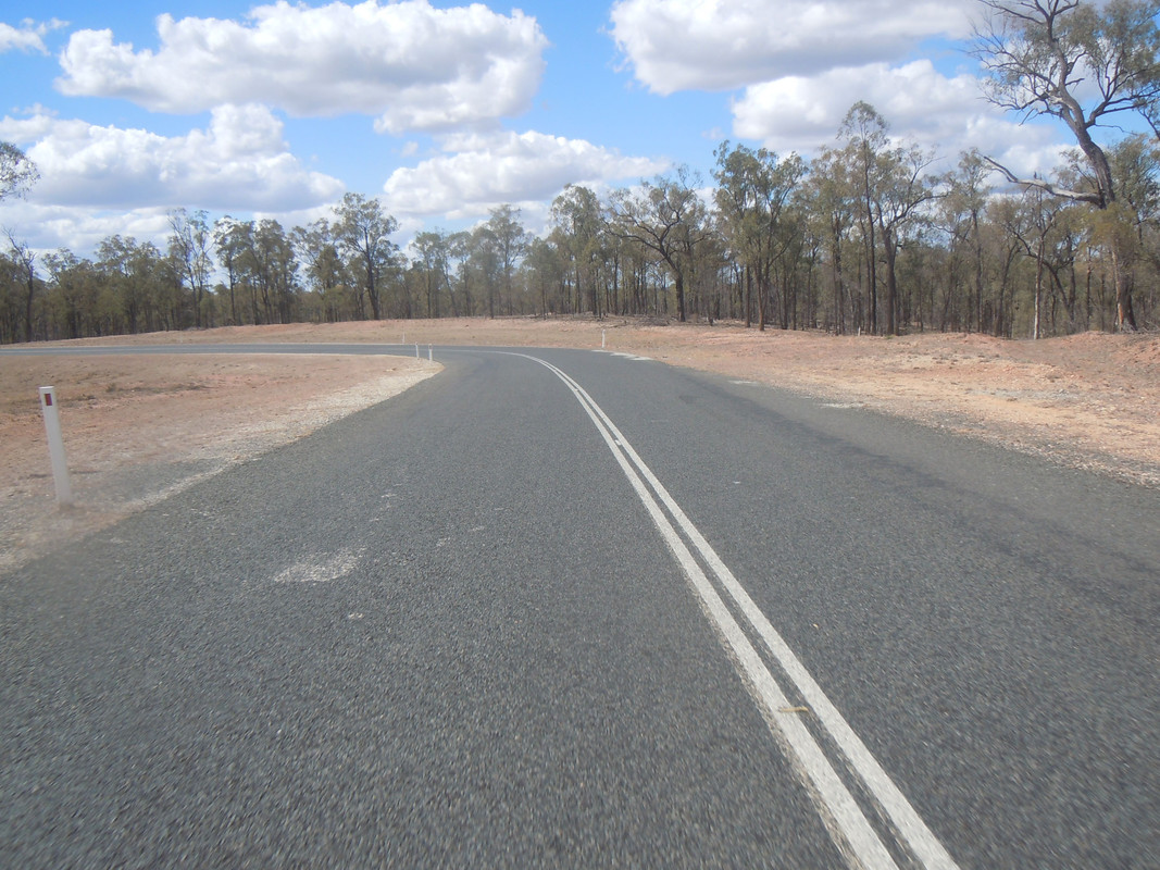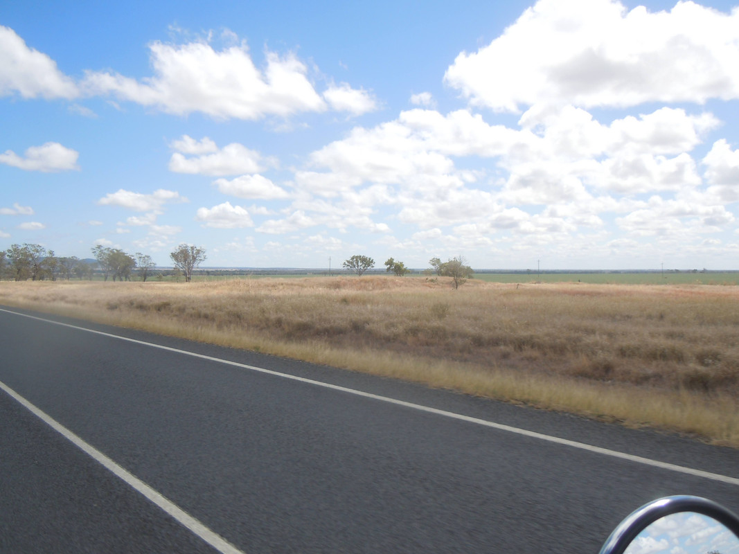 The road north to Emerald via Rolleston (where I refuelled having emptied the 5-litre container into the tank at Takarakka) has a mostly flat aspect.