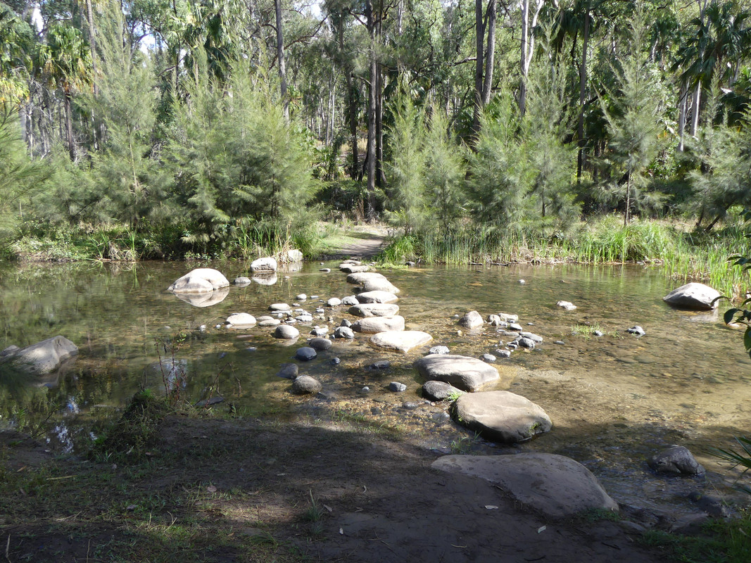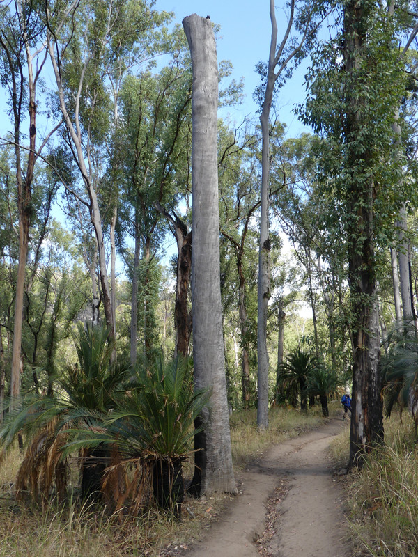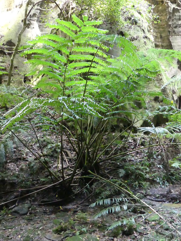Ward's Canyon is described as a 'time capsule'. It is the last place in central Queensland where the ancient king fern survives. I heard a naturalist type in the canyon talking in terms of them being 10,000,000 years old. They can't survive without water as they have no woody tissue: water fills their fronds exerting outward pressure to keep them rigid. Like a fire hose, says the sign. It also says the fronds can grow up to five metres in length, placing them amongst the largest of the world's ferns. In some ways they are less prepossessing than the tree ferns in the canyon which have very long, straight trunks supporting their leafy canopy.
