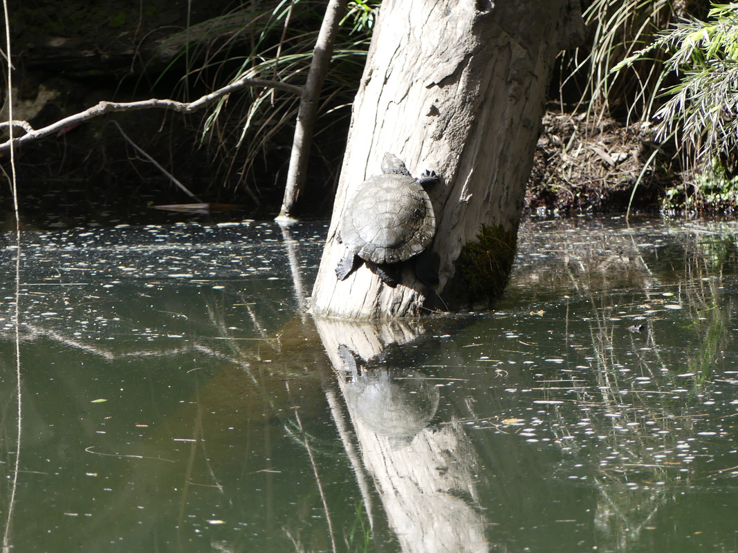 After leaving the park, I dropped in at a waterhole where people occasionally swim. A turtle clung to a tree.