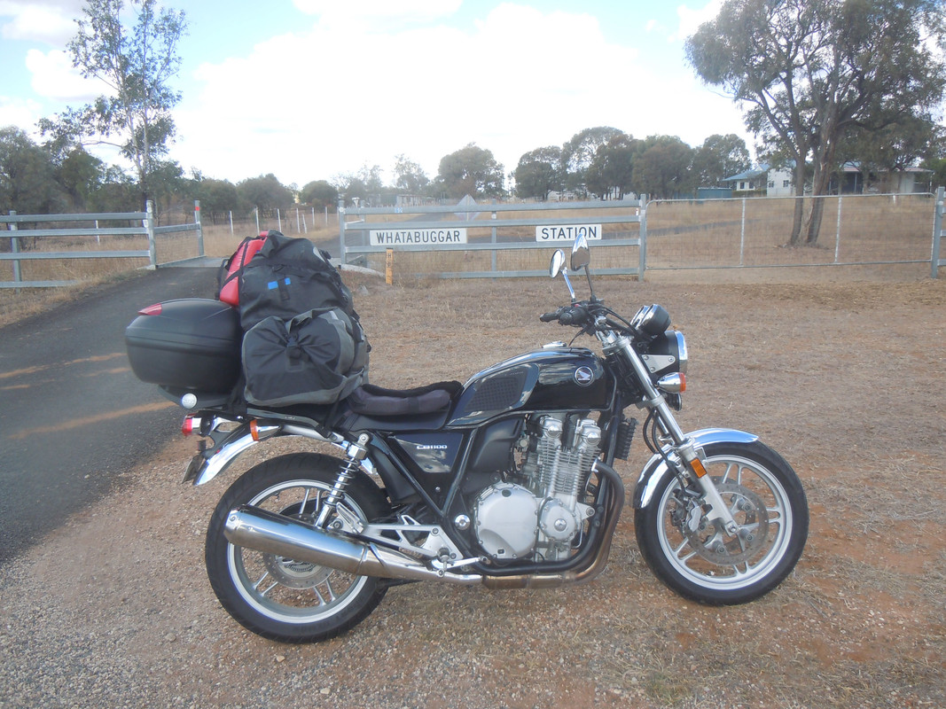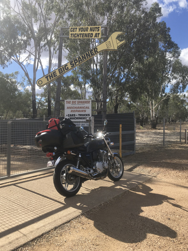 We stopped for the day in Gayndah, a pretty town. An attempt to settle at the local camp ground failed to elicit any response from the proprietor, so we found a cheap motel with a couple of rooms and settled there. It turned out the husband of the proprietor was something of a motorcycle enthusiast. This specimen sat in the shop.