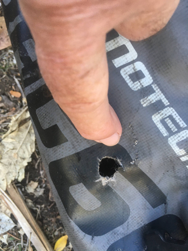 As I struck my tent and set about packing my bags, the mystery of the chewed muesli bars was solved. I'd rolled the top of the bag and tucked it under the fly of my tent, but that hadn't stopped some enterprising rodent eating its way through the bag. I was quite impressed. It's quite thick and probably not all that tasty.
