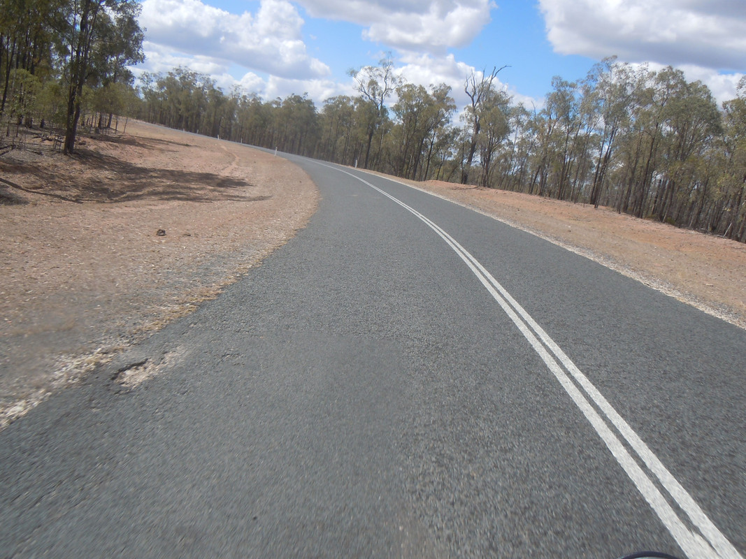 Well … almost uneventful. A short while after we turned off the A3 onto the Kilkivan Tansey Road, a passing 4-wheel drive spat a rock at me. It hit me precisely on the end of the middle finger of my right hand. Hard. It hurt. A lot. Is it shameful to confess I wanted to stop the bike, sit by the side of the road and blubber? As it turned out I didn't as KLR_Al was in front of me and there was nowhere to pass. Anyway, what good would it have done?