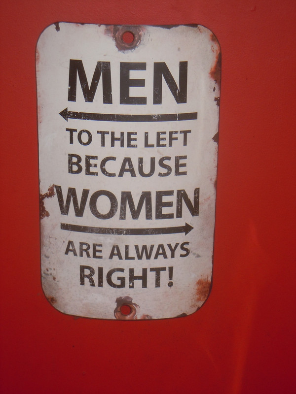 This helpful sign provides guidance to the lavatories but also, maybe, to life