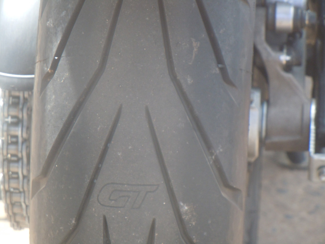 My friend and riding buddy GT loves his bike. I didn't realise how much until I noticed his rear tyre had his initials embossed on it.