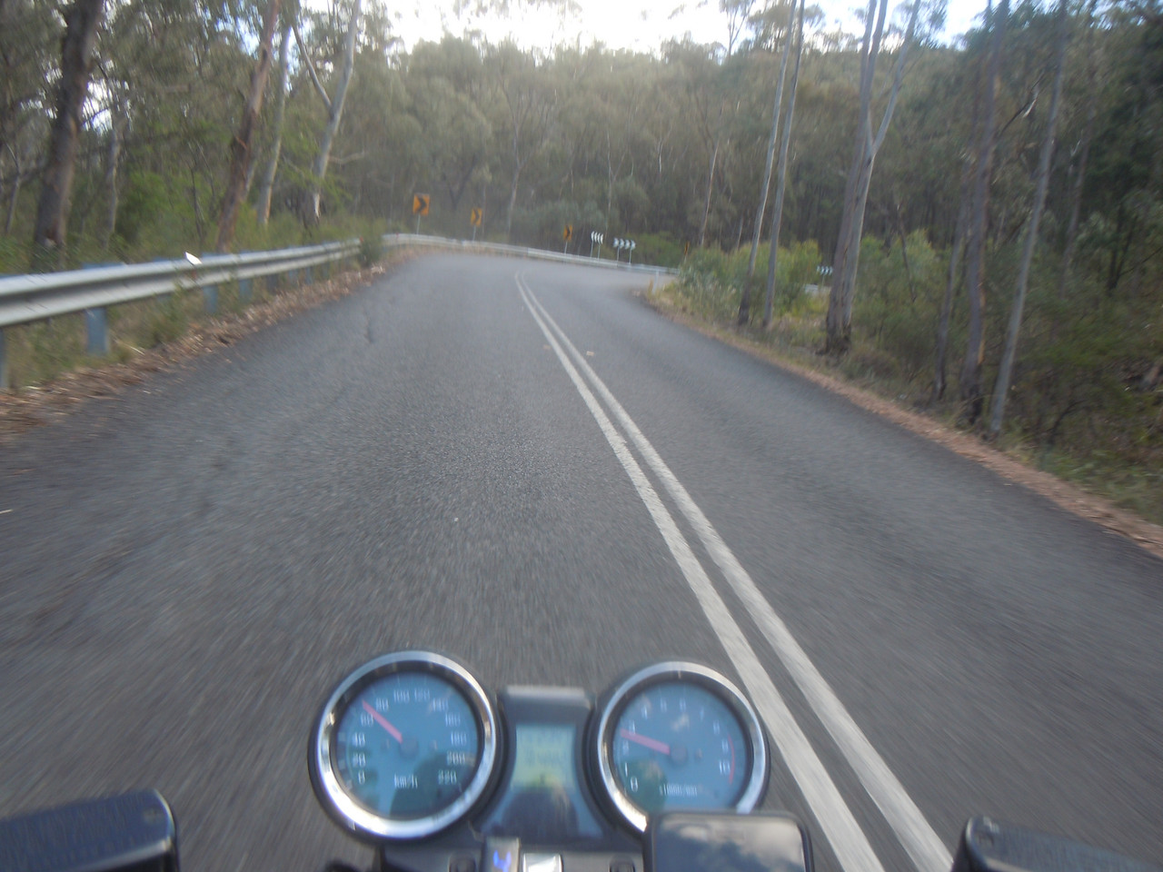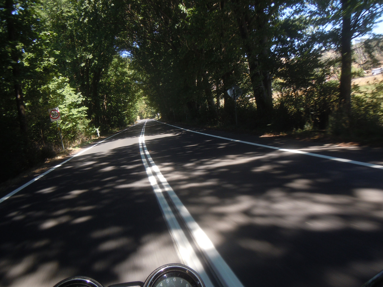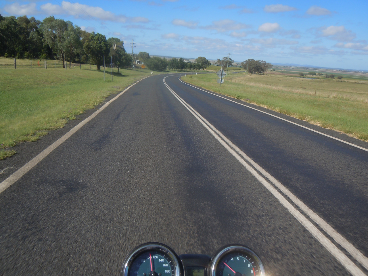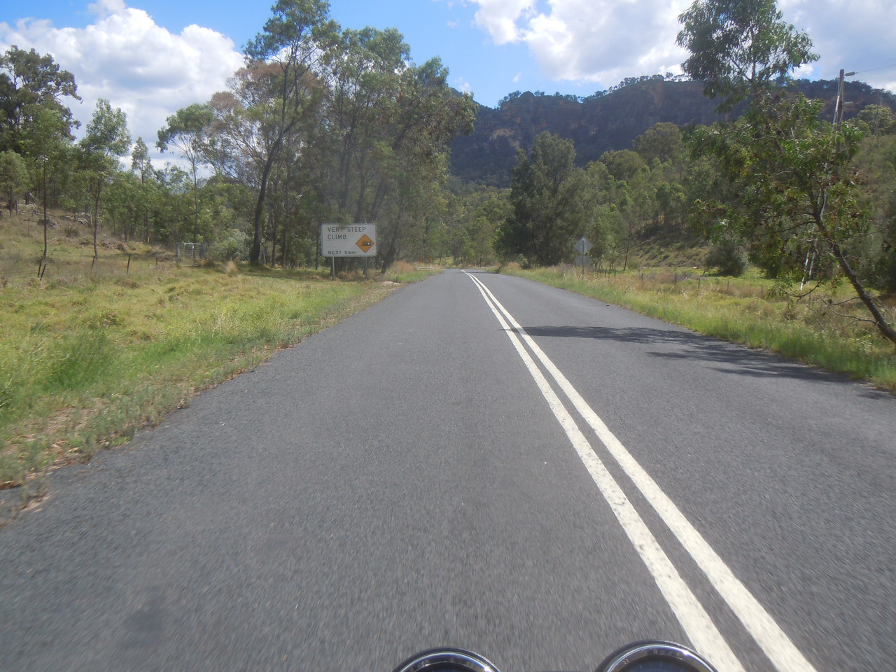 The ride from Dungog to East Gresford to Singleton is wonderful. It starts with some hills and a pretty ride along a ridge, before descending into East Gresford and a plain which proves an entertaining run. I like these roads, not because they're full of endless twists and turns — they're not; or because the surface is brilliant so I can strap on the leather hemlet and goggles and ride like the boy racer — because it isn't; but because they're scenic enough to be interesting, have enough turns and undulations (and bumps) to keep a bloke interested and awake and because there's very little traffic on them.
