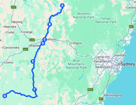 Five days later than planned, I headed south, planning to meet AussieFlyer in Boorowa at the end of my day 3.