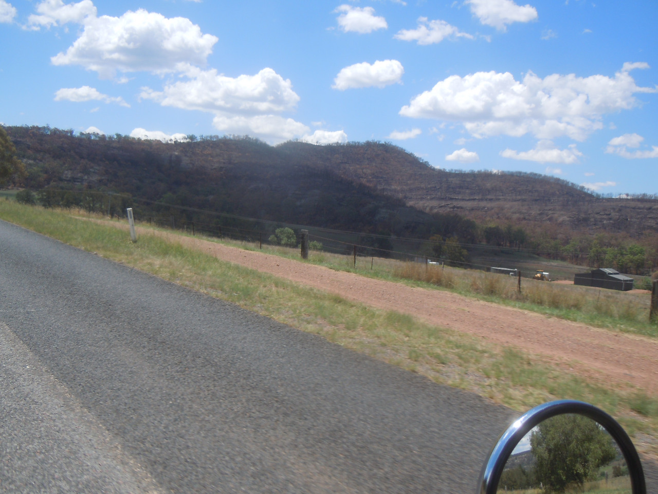 Northern end of the Bylong Valley. The grass in the paddocks is in good conditions, but the hills are showing signs of recent fires