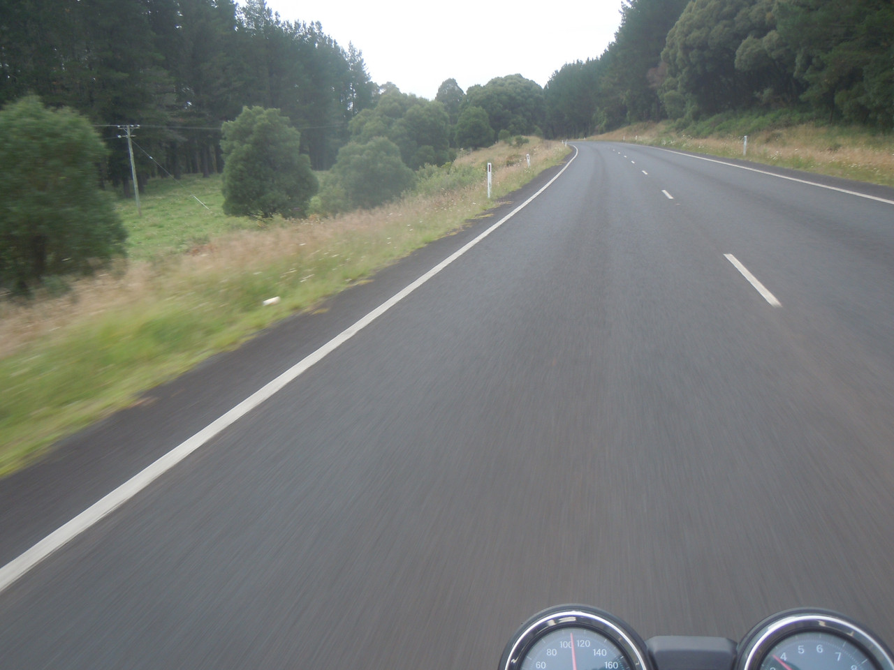 Even in summer, riding in New England is decidedly cool in the morning and I was pleased I'd packed my warm gear. I set off south along Thunderbolts Way. The road's in good condition and undulates a little as it passes through cleared farming land. It's a quick ride with little traffic to worry about.