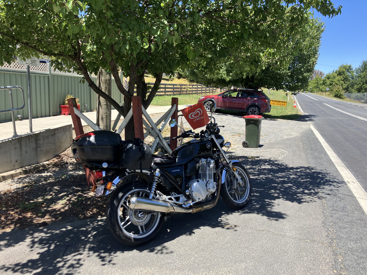 The first time I went to Denman was in 2014 on my second or third serious ride on the CB1100. I rode to Sydney, joined Pterodactyl and Jalalski and we went to Phillip Island for the MotoGP. Sadly the pictures no longer appear, but the report is here. I mention it because there was dirt on the quickest route from Denman through Yarrawa to the Bylong Valley. I glossed over it at the time, but it was nasty, slippery dirt which took one over a not inconsequential hill, and I didn't like it at all. Happily, the road is now sealed and lovely. What a difference 12 years and some bitumen makes.